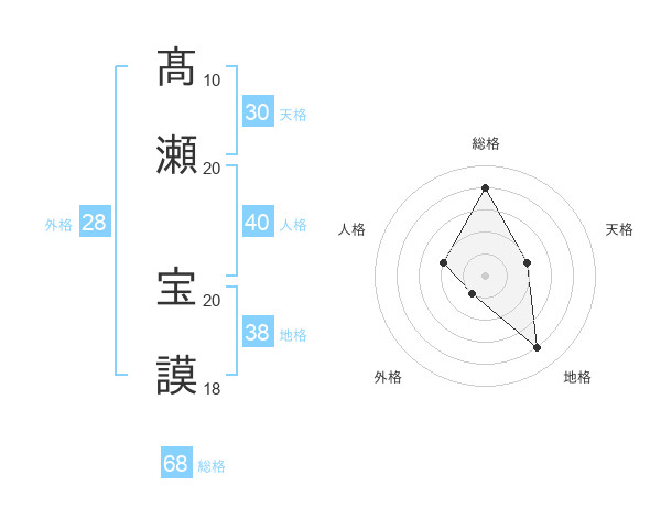 髙瀬 宝謨さんを姓名の画数から五運を鑑定