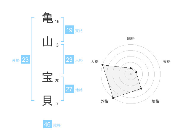 亀山 宝貝さんを姓名の画数から五運を鑑定