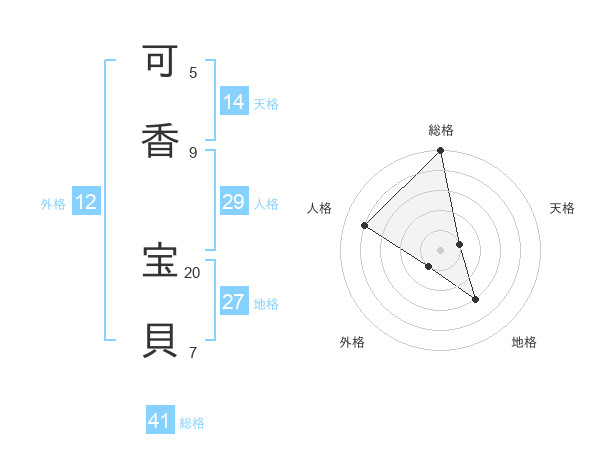 可香 宝貝さんを姓名の画数から五運を鑑定