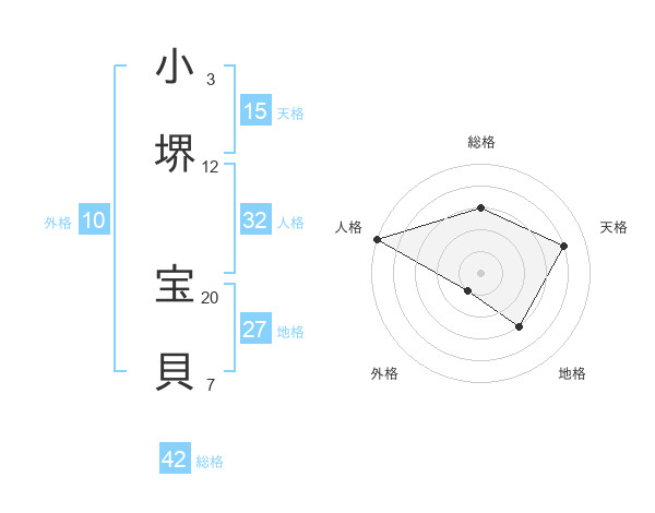 小堺 宝貝さんを姓名の画数から五運を鑑定