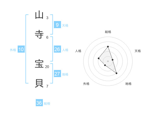 山寺 宝貝さんの総格は36画の3点!