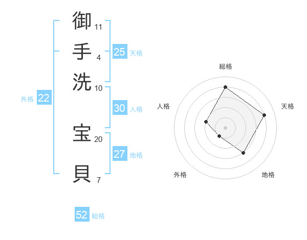 御手洗 宝貝さんを姓名の画数から五運を鑑定