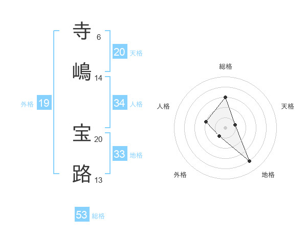 寺嶋 宝路さんの総格は53画の3点!