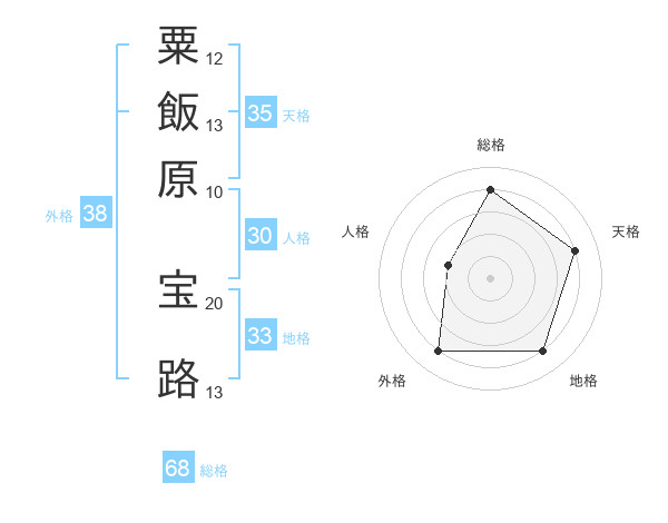 粟飯原 宝路さんの総格は68画の4点!
