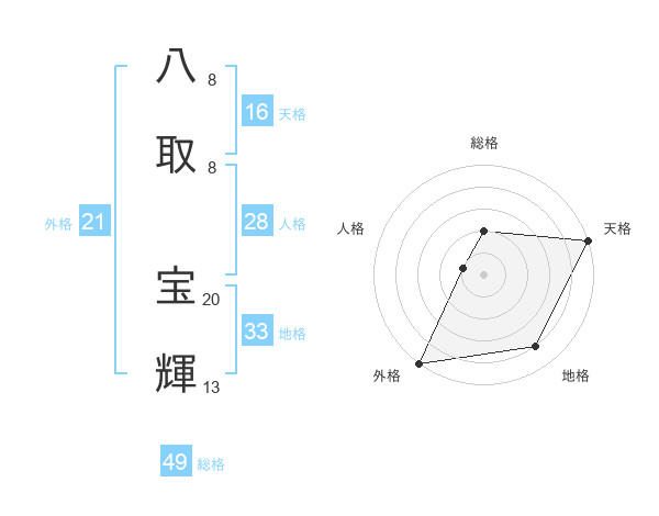 八取 宝輝さんの総格は49画の2点!