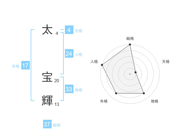 太 宝輝さんの総格は37画の5点!