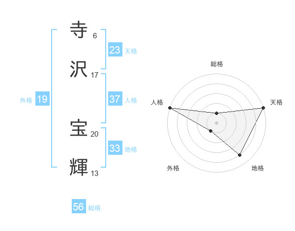 寺沢 宝輝さんの天格は23画の5点!