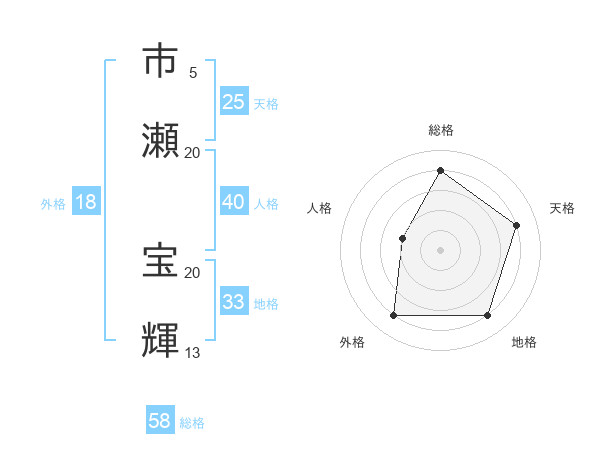 市瀬 宝輝さんの総格は58画の4点!