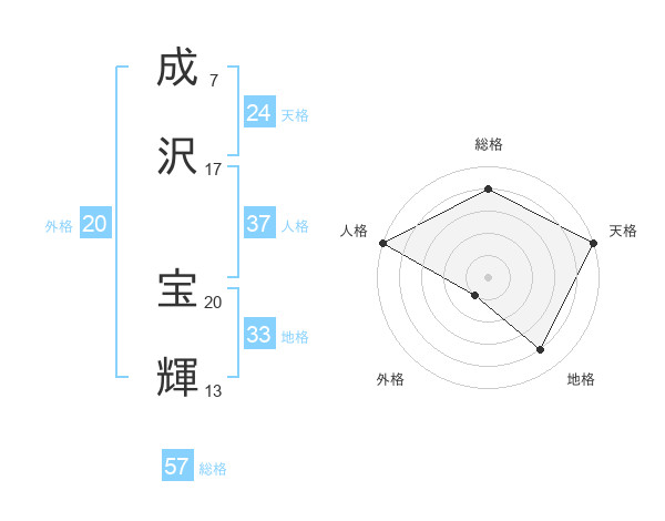 成沢 宝輝さんの総格は57画の4点!