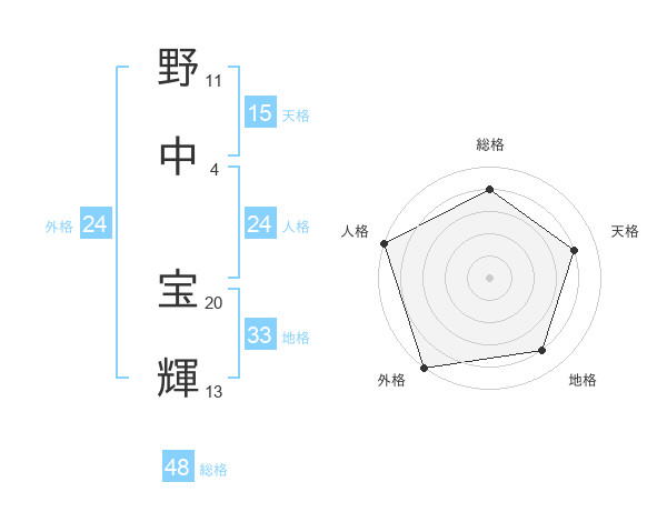 野中 宝輝さんを姓名の画数から五運を鑑定