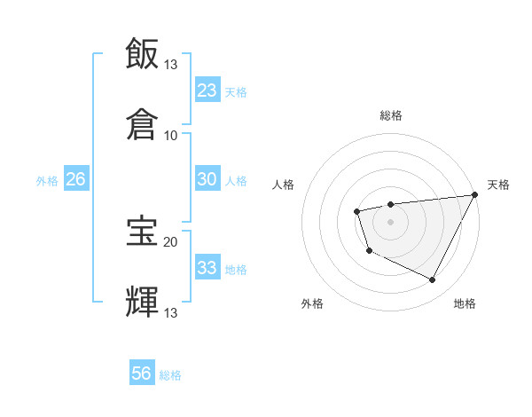 飯倉 宝輝さんの天格は23画の5点!