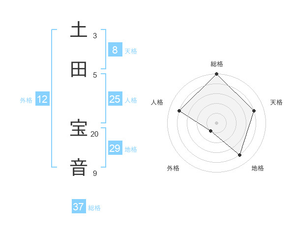 土田 宝音さんの総格は37画の5点!