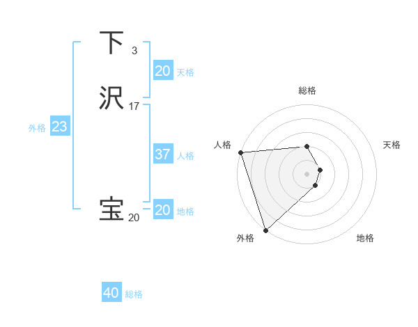 下沢 宝さんの外格は23画の5点!