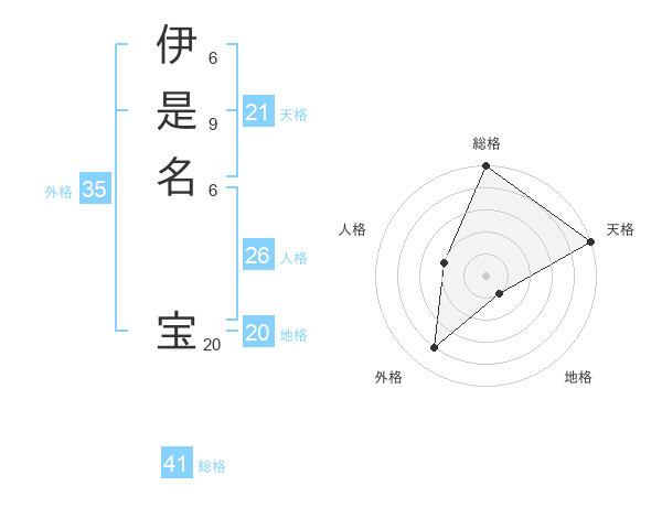 伊是名 宝さんの総格は41画の5点!