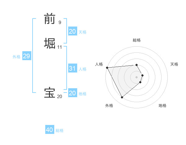 前堀 宝さんの天格は20画の1点!