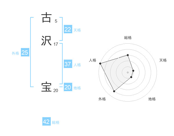 古沢 宝さんを姓名の画数から五運を鑑定