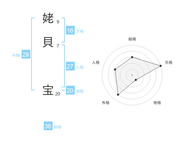 姥貝 宝さんの天格は16画の5点!