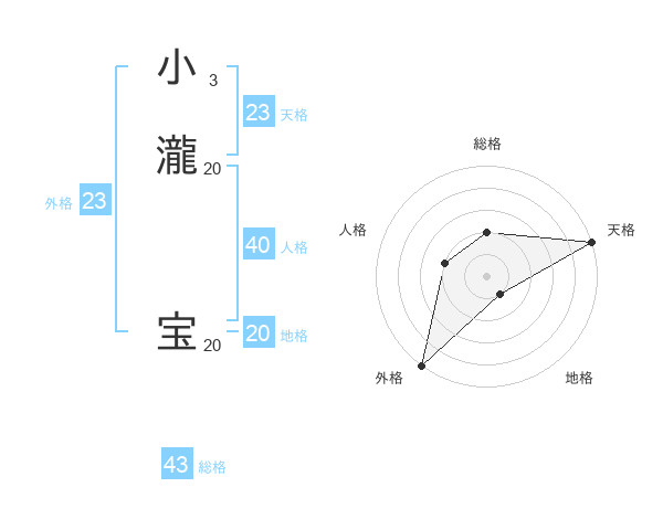 小瀧 宝さんの外格は23画の5点!