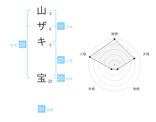 山ザキ 宝さんを姓名の画数から五運を鑑定