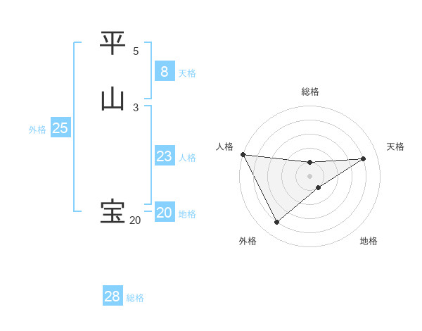 平山 宝さんの天格は8画の4点!
