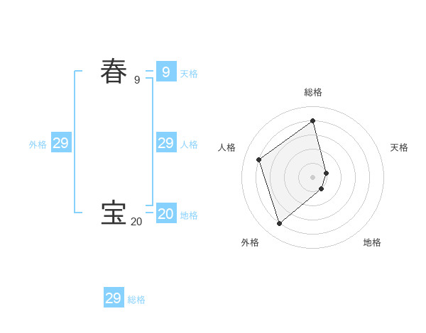春 宝さんの総格は29画の4点!