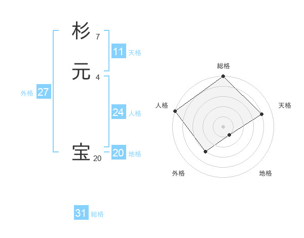 杉元 宝さんの天格は11画の4点!
