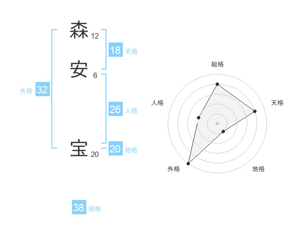 森安 宝さんの総格は38画の4点!