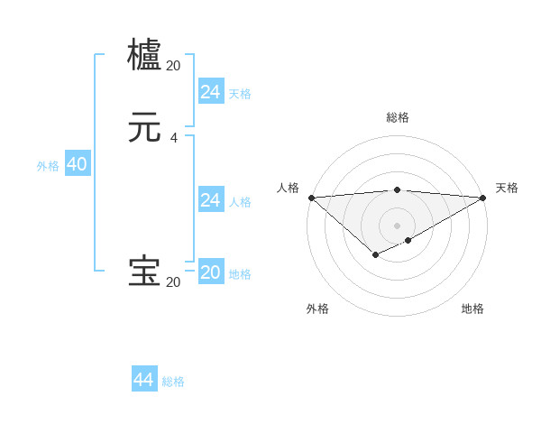 櫨元 宝さんを姓名の画数から五運を鑑定