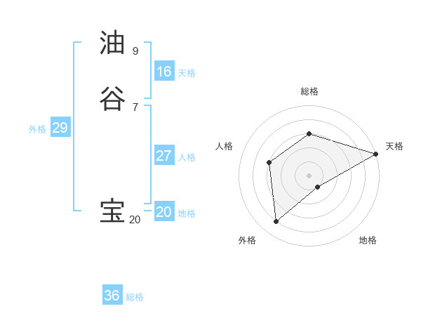 油谷 宝さんの総格は36画の3点!