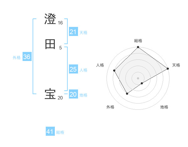澄田 宝さんの天格は21画の5点!