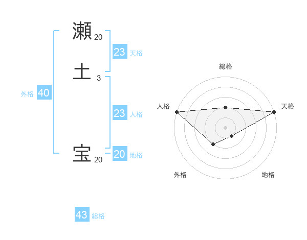 瀬土 宝さんの天格は23画の5点!