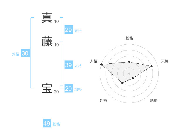 真藤 宝さんの天格は29画の4点!