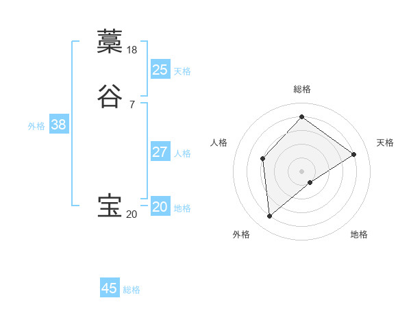 藁谷 宝さんを姓名の画数から五運を鑑定