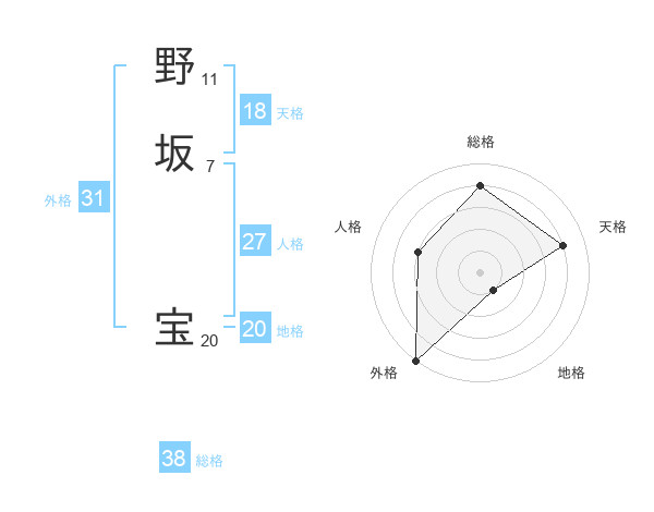 野坂 宝さんの総格は38画の4点!