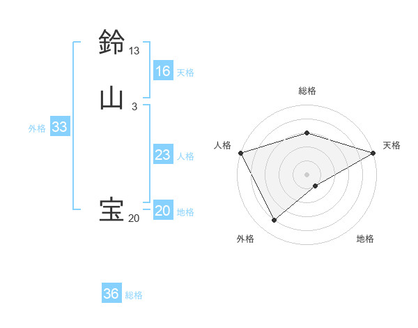 鈴山 宝さんを姓名の画数から五運を鑑定