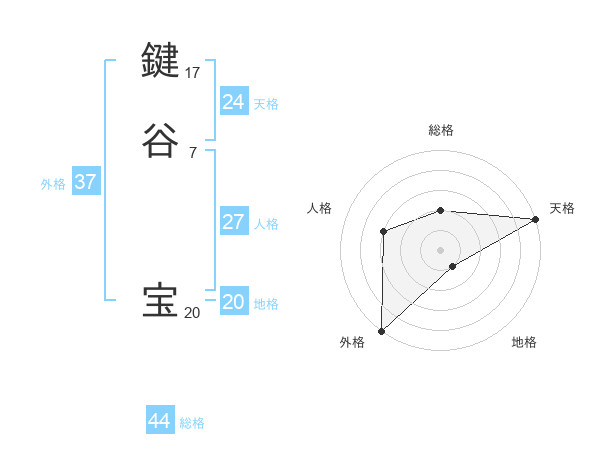 鍵谷 宝さんを姓名の画数から五運を鑑定