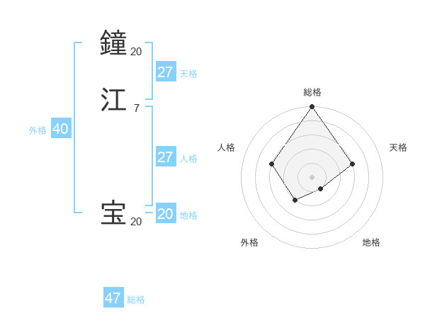 鐘江 宝さんを姓名の画数から五運を鑑定