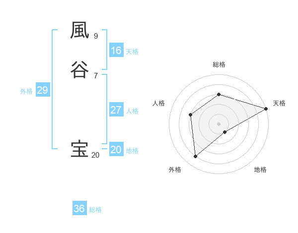 風谷 宝さんの天格は16画の5点!