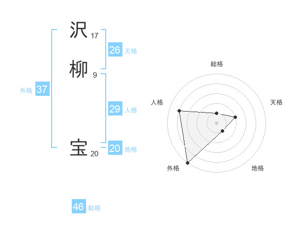 沢柳 宝さんの外格は37画の5点!