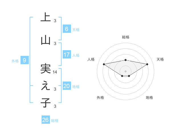 上山 実え子さんの総格は26画の2点!