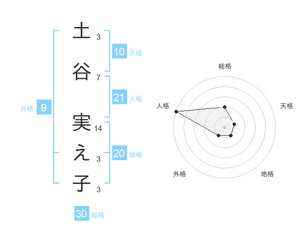 土谷 実え子さんを姓名の画数から五運を鑑定