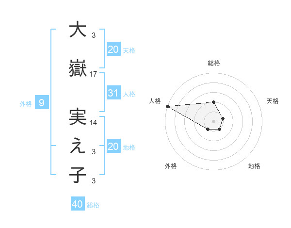 大嶽 実え子さんを姓名の画数から五運を鑑定