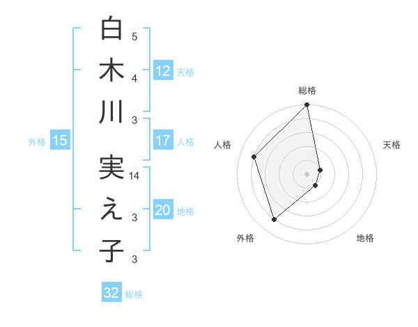 白木川 実え子さんを姓名の画数から五運を鑑定
