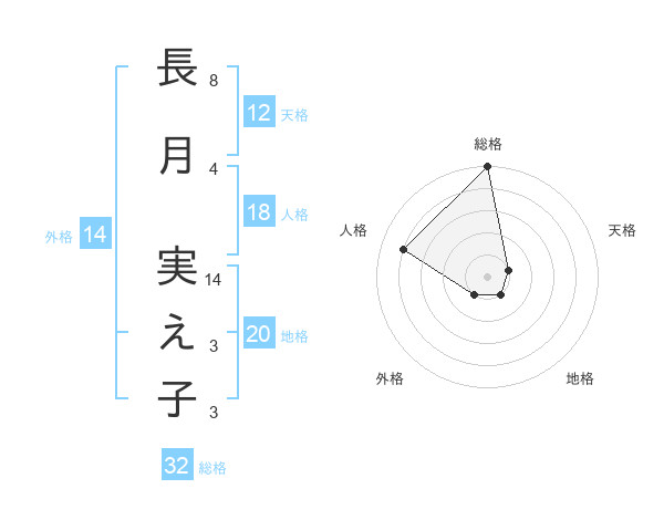 長月 実え子さんの総格は32画の5点!