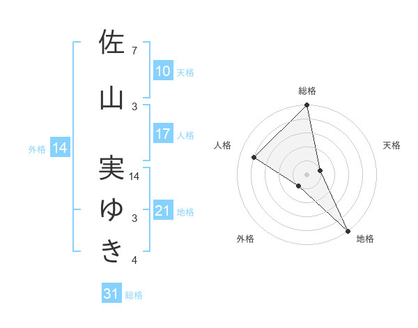 佐山 実ゆきさんを姓名の画数から五運を鑑定