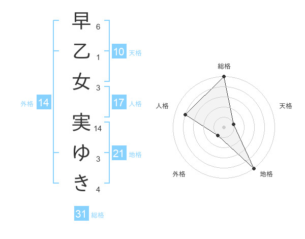 早乙女 実ゆきさんを姓名の画数から五運を鑑定