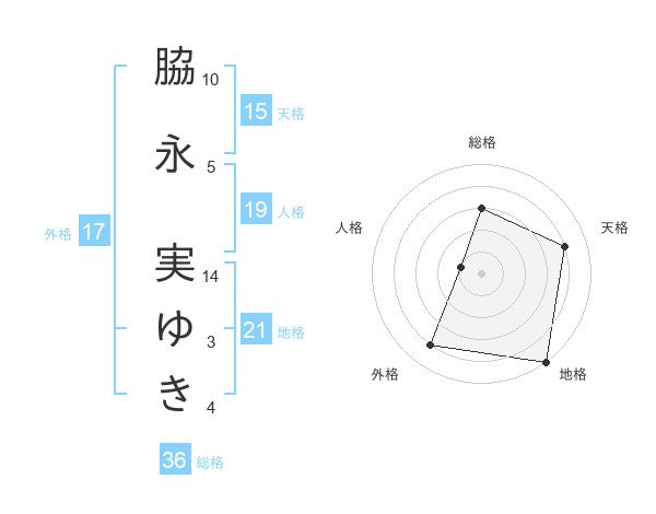 脇永 実ゆきさんの天格は15画の4点!
