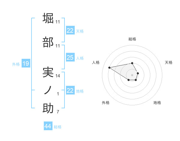 堀部 実ノ助さんを姓名の画数から五運を鑑定