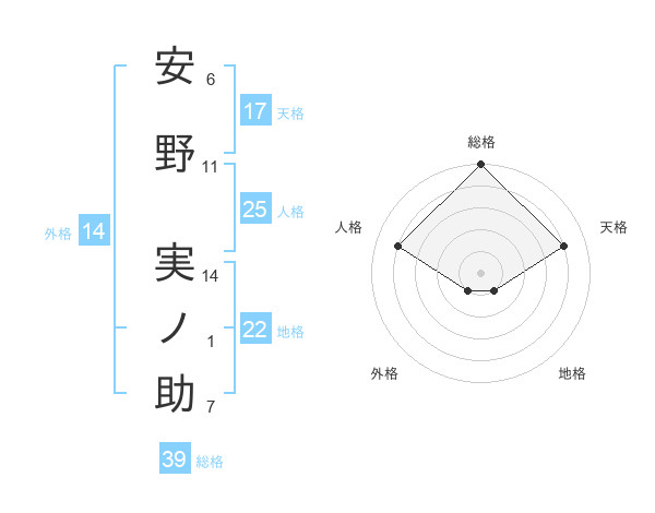 安野 実ノ助さんを姓名の画数から五運を鑑定