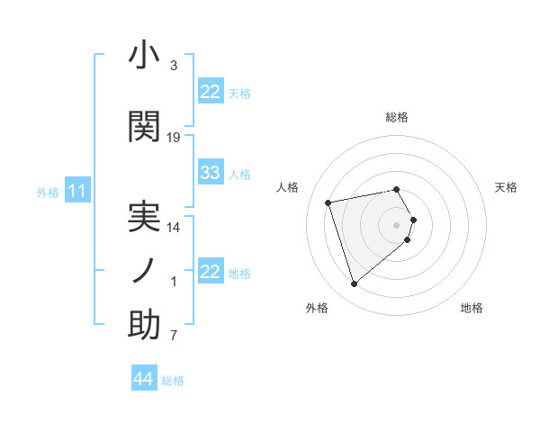 小関 実ノ助さんを姓名の画数から五運を鑑定